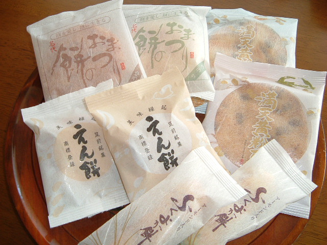 これらの商品のほかに、進物用、家庭用の商品がたくさんあります。お子様からお年寄りまで誰でも大好きなもち吉のおかきは如何ですか。